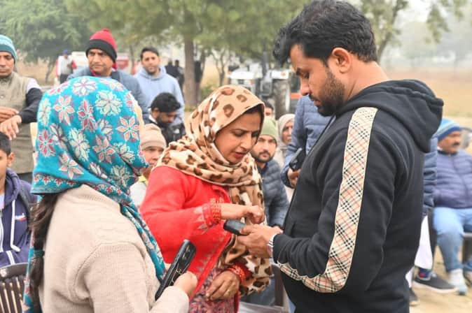 फोटो 16: सोनीपत के गन्नौर में लगाए गए दरबार में महिलाआं की समस्याएं सुनते विधायक देवेंद्र कादिय