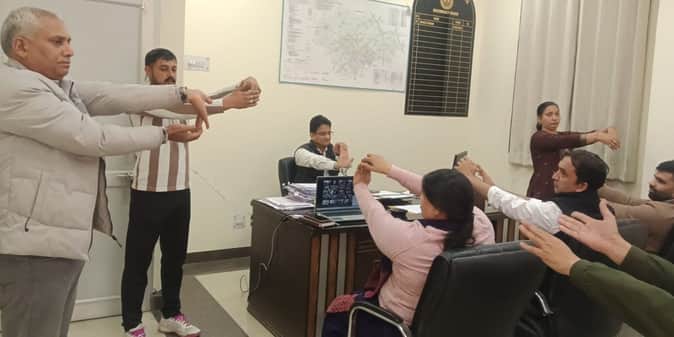 जिला आयुर्वेद अधिकारी डाॅ. राम अवतार ने कहा कि ऐसे योग ब्रेक से कर्मचारियों का मानसिक संतुलन बेहतर होता है। कार्य में एकाग्रता बढ़ती है। इसके बाद राजकीय कन्या वरिष्ठ माध्यमिक विद्यालय में भी योग प्रशिक्षण दिया गया।