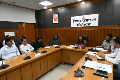 फोटो : सोनीपत लघु सचिवालय में मुख्य सचिव की वीडियो कांफ्रेंस के दौरान उपायुक्त नेहा सिंह व अन्य