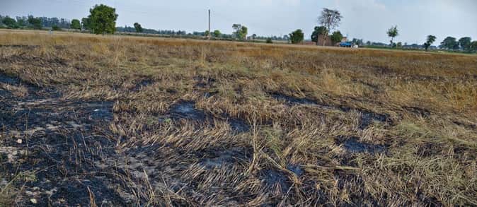 फोटो : सोनीपत के गांव अगवानपुर केे पास आग लगने से जल कर राख हुई गेहूं की फसल। स्रोत: पाठक