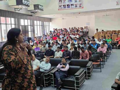 फोटो : सोनीपत के हरियाणा खेल विश्वविद्यालय, राई में कार्यशाला के दौरान विद्यार्थियों को जानकार