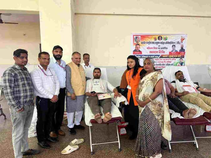 फोटो : सोनीपत की ऋषि कॉलोनी में लगे शिविर के दौरान रक्तदाता को प्रोत्साहित करते निवर्तमान मे