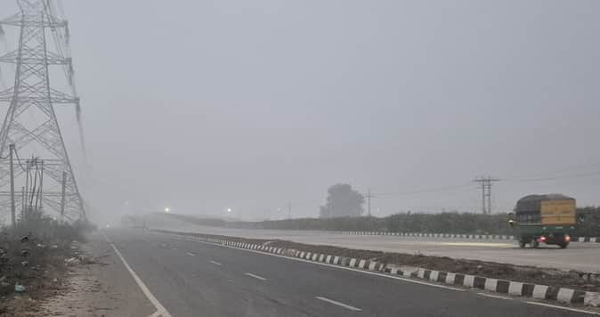 फोटो :20: सोनीपत में सुबह साढ़े सात बजे नेशनल हाईवे 334बी पर छाया हल्का कोहरा। संवाद