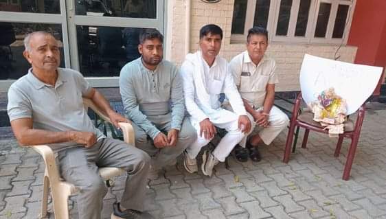फोटो 03- सोनीपत के गोहाना रोड स्थित जिला परिषद कार्यालय परिसर में समर्थकाें के साथ चारपाई बिछा