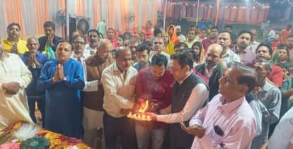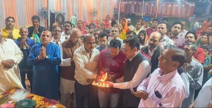मंदिर में आरती करते समिति सदस्य व श्रद्धालु। संवाद