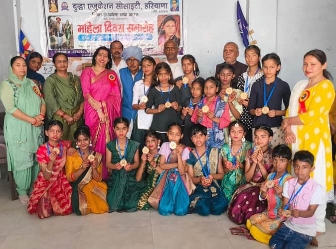 फोटो : सोनीपत के गांव टोकी में समारोह के दौरान सम्मानित विद्यार्थियों के साथ बुद्धा एजुकेशन सो