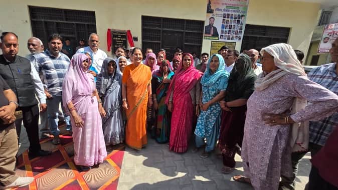 फोटो : सोनीपत के गांव बहालगढ़ में चौपाल के उद्घाटन के दौरान ग्रामीणों के साथ विधायक कृष्णा गहला
