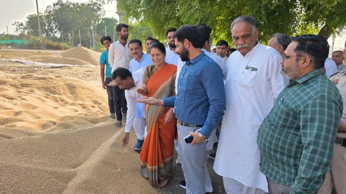 फोटो : सोनीपत के नाहरी खरीद केंद्र में गेहूं की जांच करती विधायक कृष्णा गहलावत। स्रोत: प्रवक्ता
