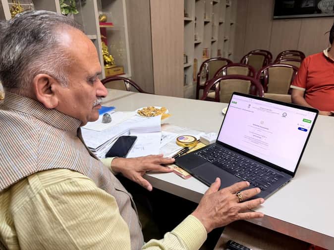 फोटो : सोनीपत स्थित अपने कार्यालय में पोर्टल पर जनगणना संबंधित जानकारी दर्ज निवर्तमान मेयर रा