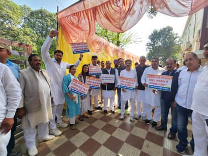 चंडीगढ़ में जिला अध्यक्ष के नेतृत्व में प्रदर्शन करते जिला कांग्रेस कार्यकर्ता। स्रोत : प्रवक्