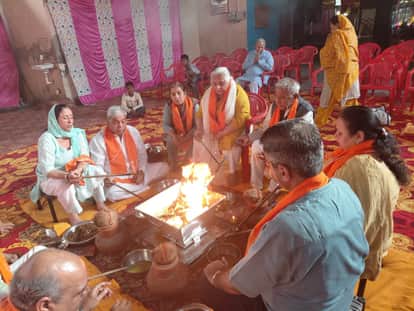 फोटो : सोनीपत की सिक्का कॉलोनी में वैशाखी पर्व समारोह के दौरान गायत्री महायज्ञ में आहुति डालते