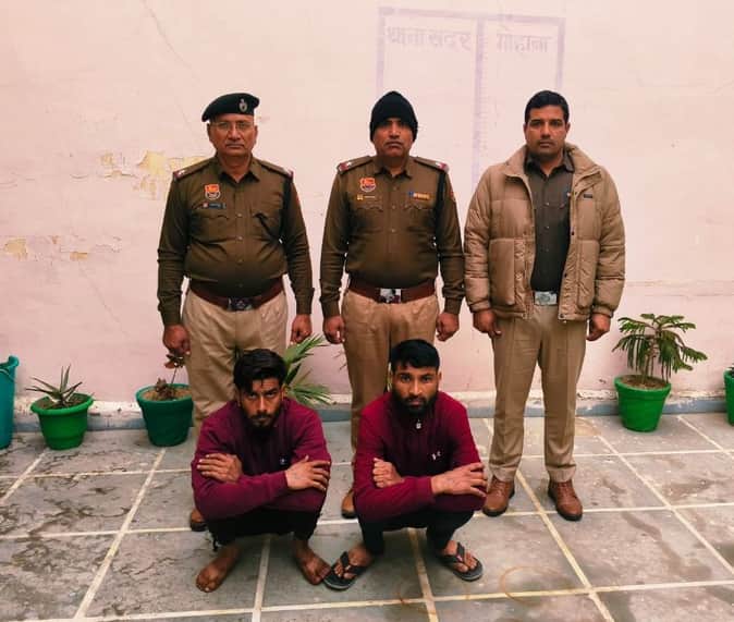फोटो 18: सोनीपत के सदर गोहाना पुलिस की गिरफ्त में लूट के दो आरोपी। स्रोत: पुलिस प्रवक्ता