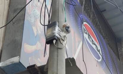 सोनीपत बस स्टैंड के बाहर खंभे पर लगा कैमरा। संवाद