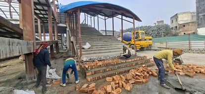 रेलवे स्टेशन पर निर्माण कार्य में लगे श्रमिक। संवाद