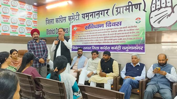 यमुनानगर। कांग्रेस पार्टी ने जगाधरी स्थित जिला ग्रामीण कार्यालय में संविधान बचाओ दिवस मनाया। संविधान निर्माता डॉ. बीआर आंबेडकर को याद किया गया। कार्यक्रम में कांग्रेस के जिला अध्यक्ष ग्रामीण नरपाल सिंह गुर्जर ने कहा कि भाजपा व आरआरएस संविधान को बदलने का प्रयास कर रही हैं। उन्होंने कहा सांप्रदायिक ताकतों ने जब संविधान बनाया जा रहा था उस समय भी इसका विरोध किया था। नरपाल सिंह ने कहा कि लोकसभा में नेता प्रतिपक्ष राहुल गांधी कांग्रेस की ही नहीं, बल्कि जनमानस की लड़ाई लड़ रहे हैं। अगर संविधान बदला गया तो सबसे ज्यादा नुकसान जनता को होगा। उन्होंने कहा कि भाजपा सरकार की तानाशाही का सभी को एकजुट होकर मुकाबला करना होगा।