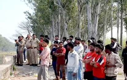 दादुपुर नहर पर वीरू का शव मिलने के बाद मौजूद लोगों की भीड़ व पुलिस। संवाद- फोटो : संवाद