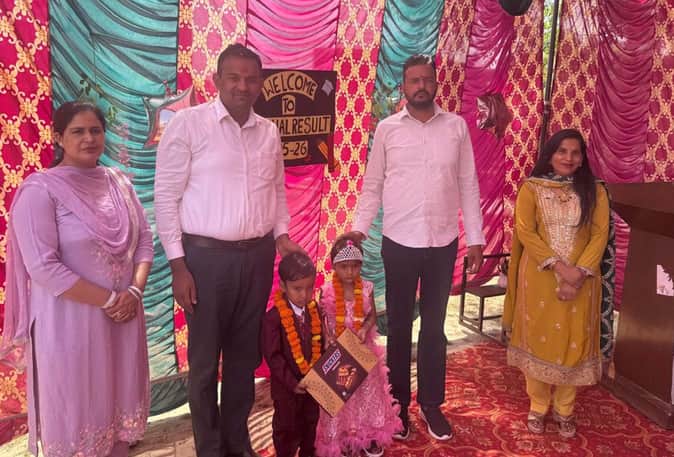 बच्चों को पुरस्कृत करते हुए अनिल संधू व अमन संधू। स्कूल