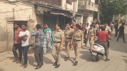 कार्रवाई के दौरान मौजूद महिला पुलिस कर्मचारी। संवाद- फोटो : संवाद