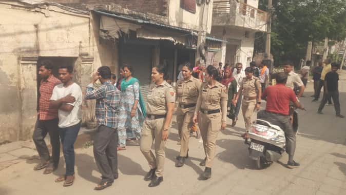 कार्रवाई के दौरान मौजूद महिला पुलिस कर्मचारी। संवाद