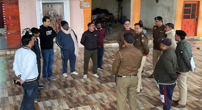 पक्का घाट मंदिर में स्थानीय लोगो से बात करते एसपी कमलदीप गोयल। संवाद