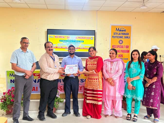 पॉलिटेक्निक दामला में स्वयंसेवकों को सम्मानित करता स्टाफ। संस्थान