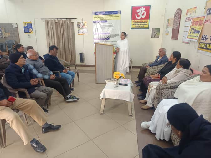 वरिष्ठ नागरिक क्लब में विचार रखती ब्रह्मकुमारी। स्वयं