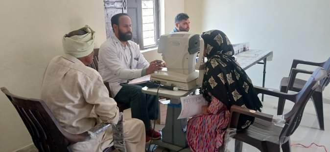 गांव रादौरी में ग्रामीणों की आंखों की जांच करते विशेषज्ञ। संवाद