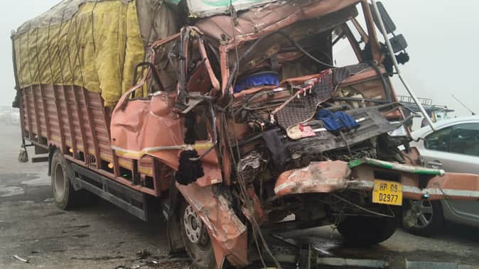 धुंध का कहर : सहारनपुर-पंचकूला हाईवे पर टकराए आठ वाहन, दो चालक घायल