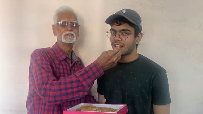 पुत्र कृष्णा का मुंह मिठा करवाते शिव चुन्नी। स्वयं