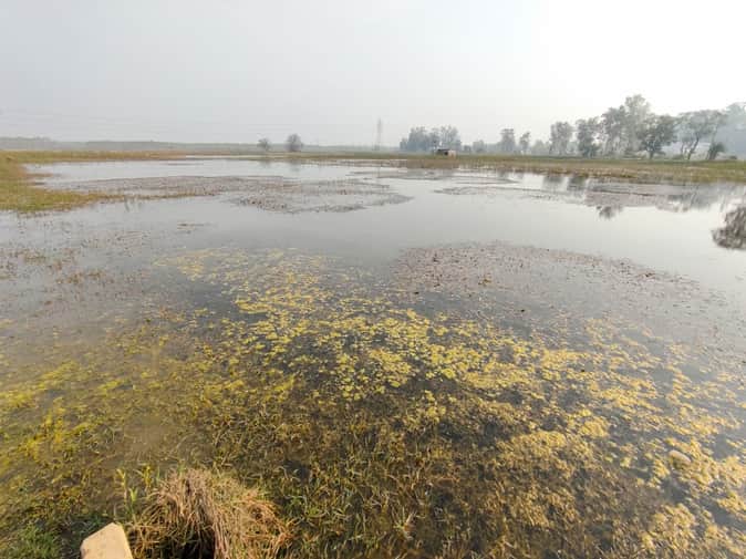 सोम नदी में उफान आने से मलिकपुर बांगर गांव में पानी में डूबे खेत। आर्काइव