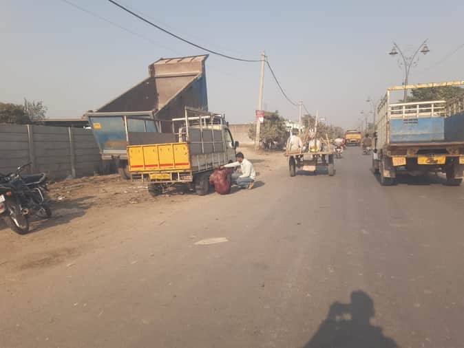 नेशनल हाईवे पर वाहन को ठीक करता मिस्त्री। संवाद