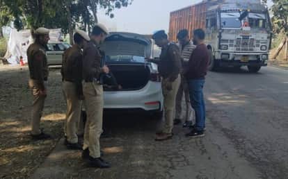 जिले की सीमा पर नाका लगा जांच करती पुलिस। प्रवक्ता