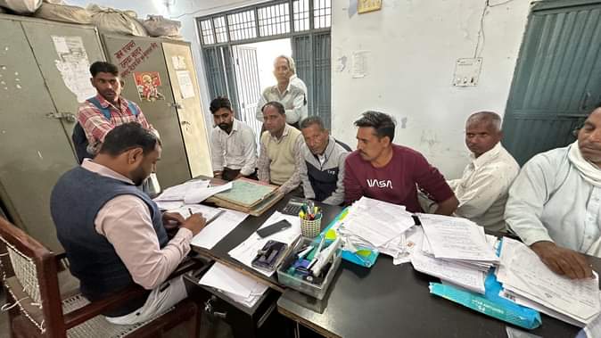 तहसील रादौर में पटवारी से अपने कार्य करवाने पहुंचे लोग। संवाद