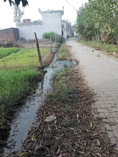 गांव अलाहर में सफाई न होने से गंदगी से अटी पड़ी नाली। संवाद