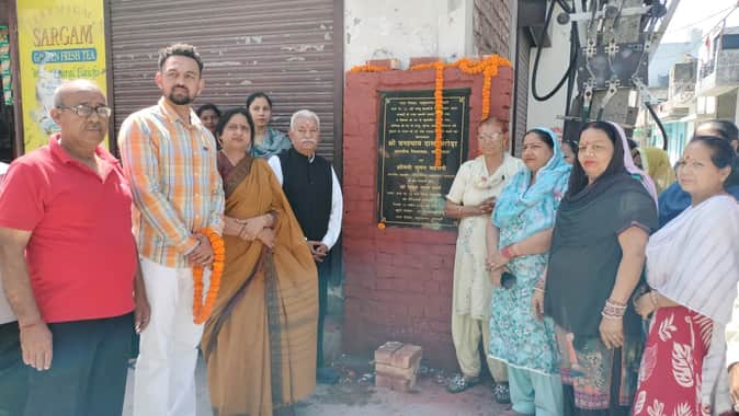 जम्मू कॉलोनी में गलियों व सड़कों के निर्माण कार्य का शिलान्यास करते मेयर, विधायक व अन्य। प्रवक