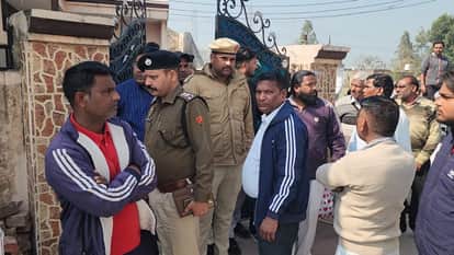 वारदात के मौके पर कार्रवाई के लिए पहुंची पुलिस व मौजूद ग्रामीण। संवाद