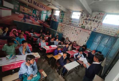 राजकीय विद्यालय में पढ़ते विद्यार्थी। आर्काइव