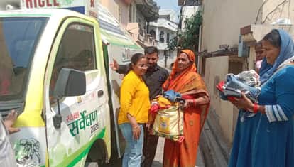 आरआरआर वाहन में पुराना सामान देती मिश्रा कॉलोनी की महिलाएं। प्रवक्ता