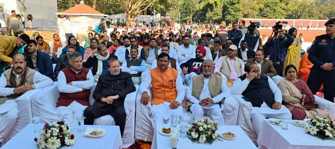 मुख्य अतिथि पर्यटन मंत्री अरविंद शर्मा ने मां सरस्वती की प्रतिमा के समक्ष दीप प्रज्ज्वलित कर कार्यक्रम का उद्घाटन किया और पद्म विभूषण से सम्मानित स्वर्गीय दर्शन लाल जैन के चित्र पर पुष्प अर्पित कर श्रद्धांजलि दी। उन्होंने 11 कुंडीय यज्ञ में पूर्णाहुति डाली और महोत्सव परिसर में लगी चित्रकला प्रतियोगिता का अवलोकन किया।