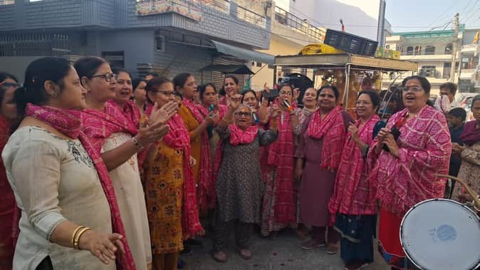 प्रभातफेरी में भजन गातीं महिला श्रद्धालु। आयोजक