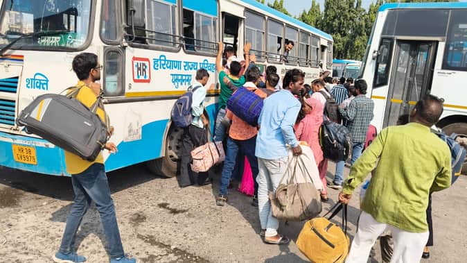 Yamuna Nagar News: घर लौटने की होड़, बस अड्डे पर उमड़ी भीड़