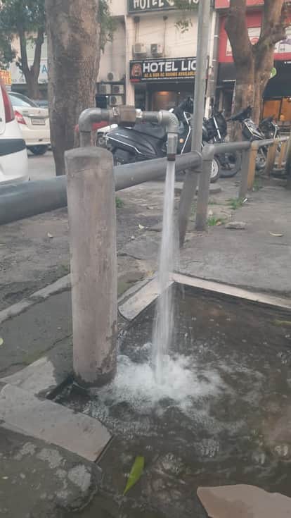 ताऊ देवी लाल पार्क के पास व्यर्थ बहता पानी। संवाद