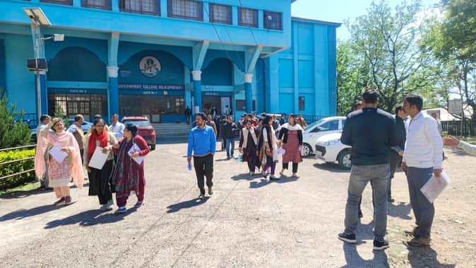 बिलासपुर कॉलेज में आयोजित सीबीएसई स्क्रीनिंग टेस्ट देकर बाहर आते शिक्षक। संवाद