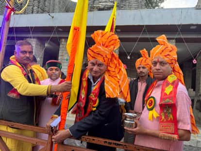 मार्कंडेय में बैसाखी मेले का झंडा रस्म के साथ शुभारंभ करते मुख्यातिथि। संवाद