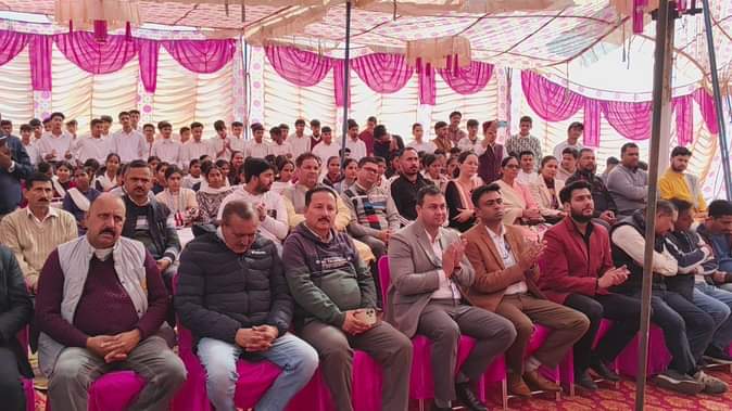 राजकीय महाविद्यालय श्री नयना देवी जी में आयोजित कार्यक्रम में मौजूद विद्यार्थी व अध्यापक। संवाद