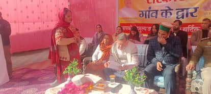 कोट में सरकार गांव के द्वार कार्यक्रम में समस्याएं सुनाती हुई सपना देवी। संवाद