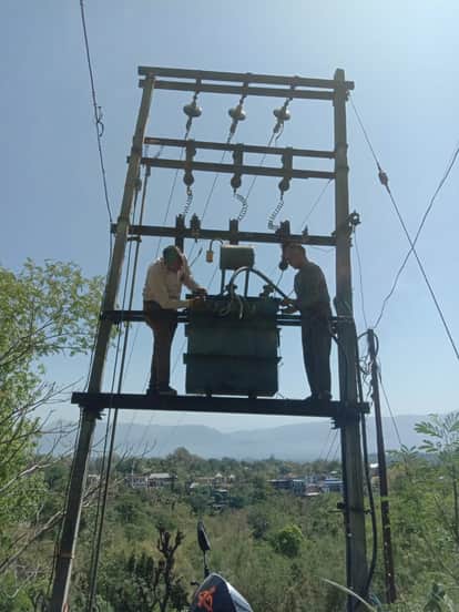 भराड़ी के मिहाड़ा गांव में ट्रांसफार्मर की मरम्मत के लिए पहुंचे कर्मचारी। संवाद