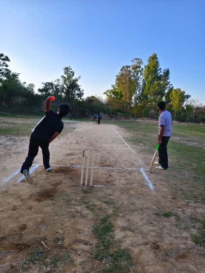 भदरोग में आयोजित क्रिकेट प्रतियोगिता में गेंद करवाता गेंदबाज। संवाद
