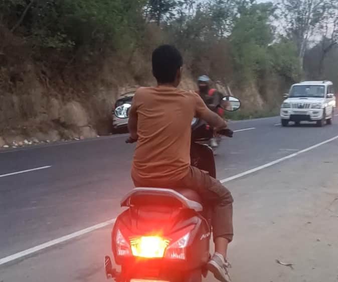 दधोल में स्कूटी चलाता नाबालिग। संवाद