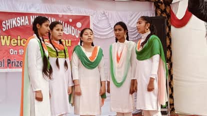 राहण शिक्षा निकेतन झंडूता में आयोजित वार्षिक समारोह में गीत की प्रस्तुति देती हुई छात्राएं। स्र